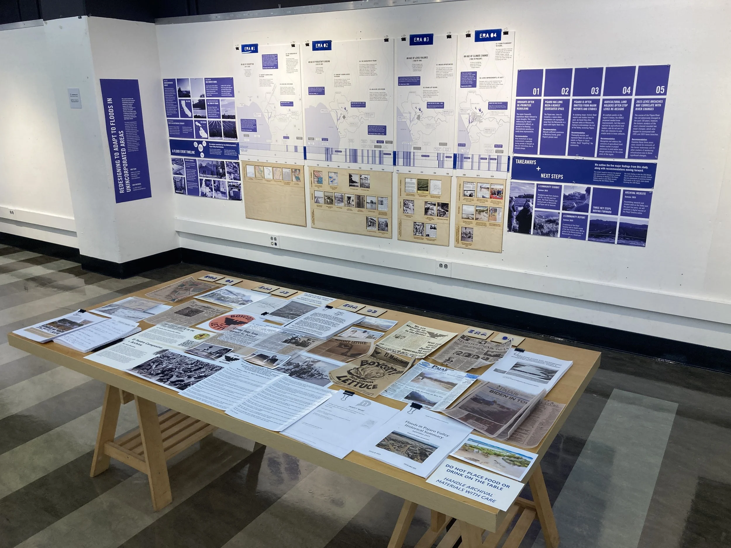 The exhibit at UC-Berkeley highlighted our research process, our data analysis from the archives, and our findings and recommendations.